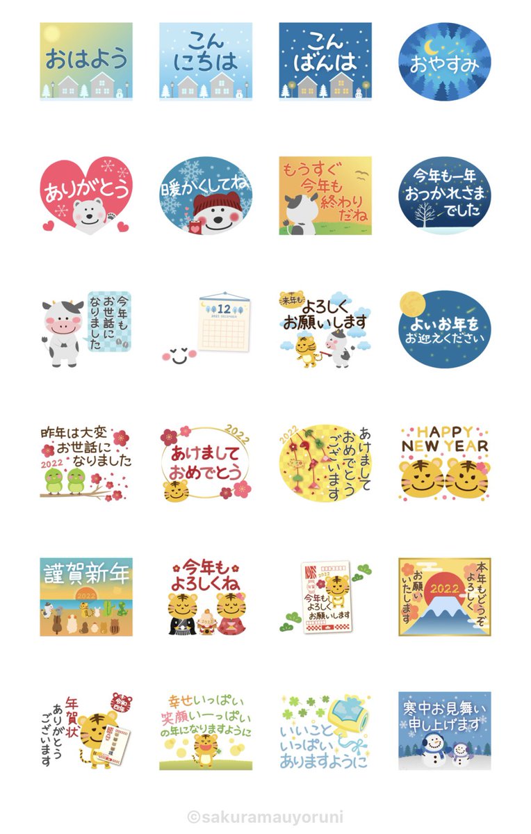 🎍動く✳︎やさしいスタンプ✳︎年末年始2022🎍 store.line.me/stickershop/pr… 寅年の2022年🐯✨ 大晦日からお正月のご挨拶、年賀状のお礼、寒中見舞いなど❄年末年始に使えるスタンプを発売中です😌📱 #あけおめスタンプ告知コンテスト #あけおめスタンプ2022 #LINEスタンプ #お正月 #寅年 #イラスト