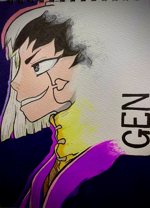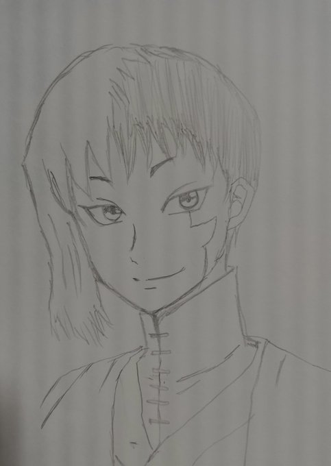 前の絵の一部アップ絵 あさぎりゲン #イラスト好きな人と繋がりたい #絵師さんと繋がりたい #落描き #落書き #絵描きさんと繋がりたい #イラスト #絵 #DrSTONE #dcst #あさぎりゲン