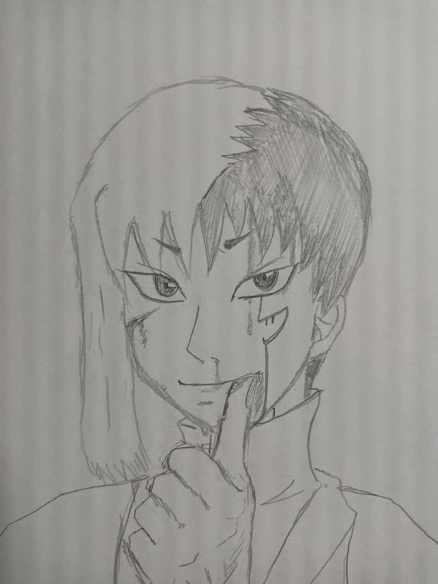 あさぎりゲン ちょい出血してます。 注意 #イラスト好きな人と繋がりたい #絵師さんと繋がりたい #落描き #落書き #絵描きさんと繋がりたい #イラスト #絵 #DrSTONE #dcst #あさぎりゲン
