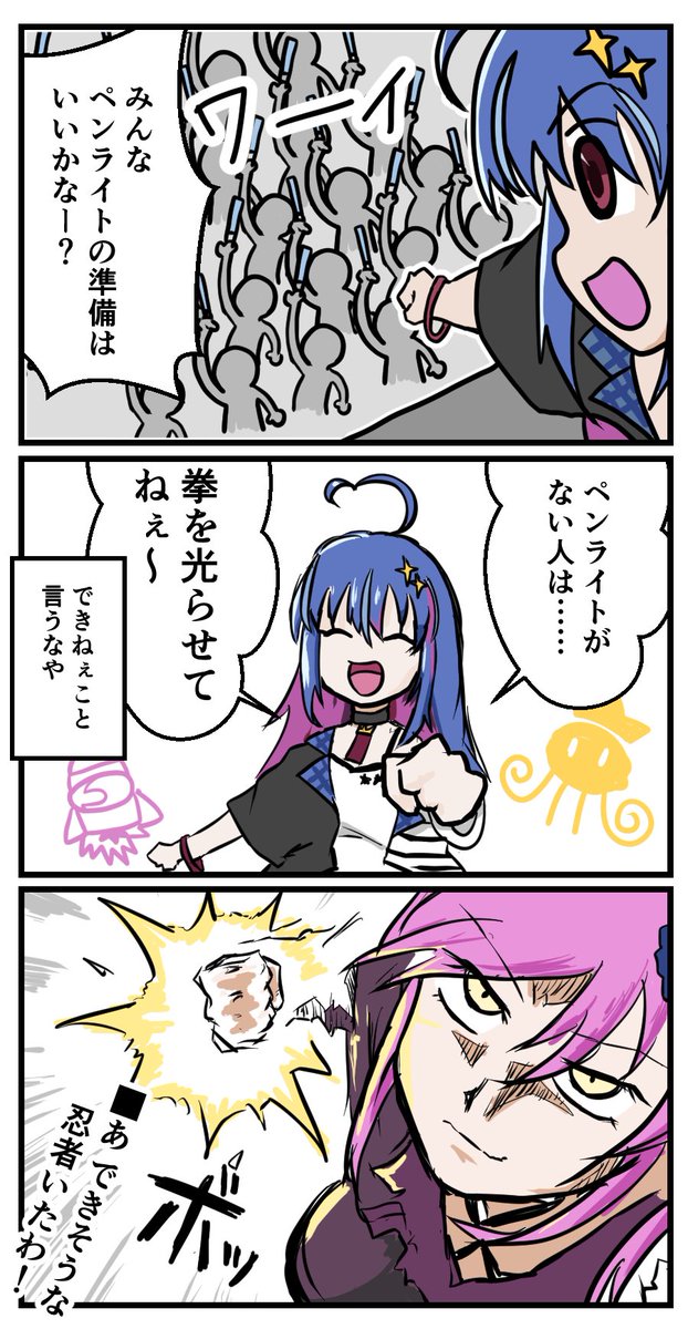 描けたァ!瑠璃姉5周年おめでとうございますと邪フェスお疲れ様でした絵です! 姫様も一緒に描かせていただきましたッ! #朝ノ瑠璃 #朝ノ瑠璃デビュー5周年 #あさの絵巻 #邪神ちゃんドロップキック