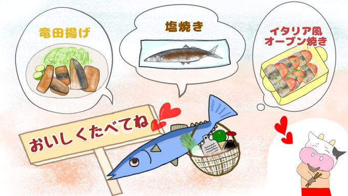 秋刀魚と言えば塩焼きになってしまうのですが😅 他にも刺身、揚げ物、炒め物、煮物など色々ありますよね〜😋 あすかなは何がいいかな? ムッチョも考え中💪🐮💭💕 #あすかなと姫ピメの秋刀魚 #あすかなアート