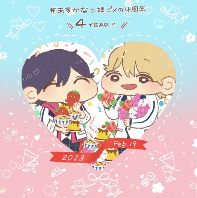 1日遅くなっちゃったけど4周年おめでとう❤️💙 レッスン頑張って元気にしてるかな?? またあすかなと姫ピメのみんなで楽しい時間が過ごせるといいなぁ~ #あすかな4周年おめでとう #あすかなと姫ピメの4周年 #あすかなと姫ピメはずっと一緒だよ #あすかなアート