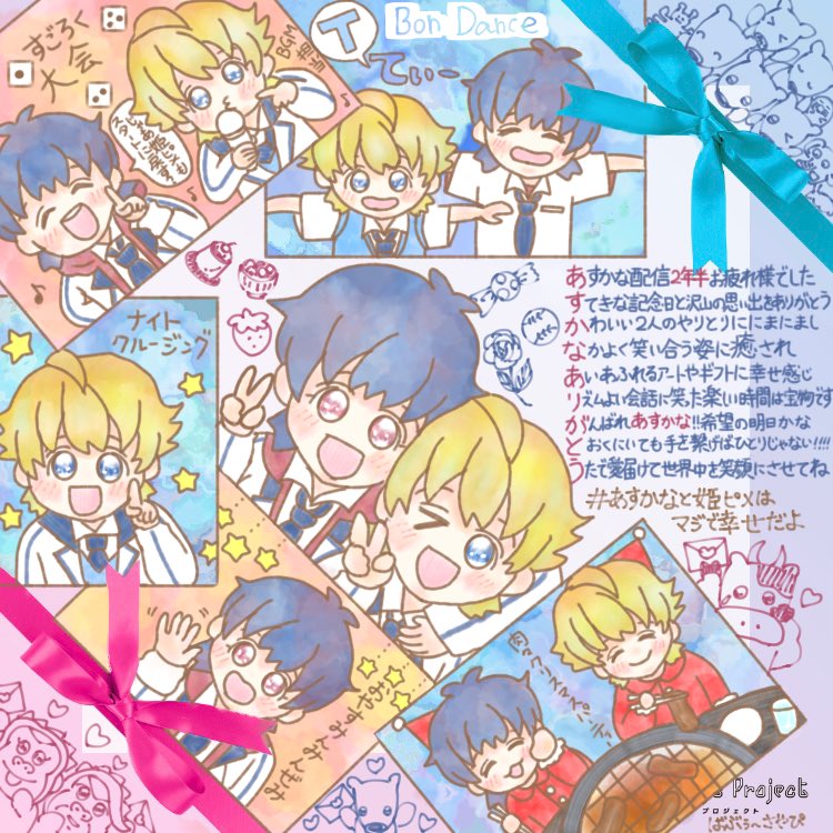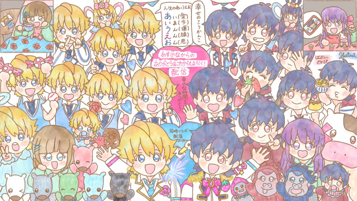 あ 愛が溢れる優しい空間 り リズムよい息ぴったりなトーク が 画伯とダークと時々田中 と ときめきからの姫ピメ失恋 う 宇宙人にも愛されるASCANA あすかな配信263回ありがとう🕊🍓 これからもよろしくね👬👭 あすかな大好き💙❤️ #あすかなアート #あすかなと姫ピメはマジで幸せだよ