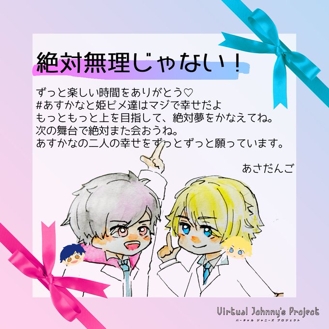 飛鳥くん星空くん、SHOWROOMさんの配信が無くなるのは本当に寂しいです😢 でも、新曲やMV、YouTubeを楽しみに、これからもあすかなと姫ピメはずっと一緒に笑顔で、幸せな世界を見れますように😊 #あすかなと姫ピメ達はマジで幸せだよ あすかなライブにいつか行けますように⭐️💙❤️ #あすかなアート