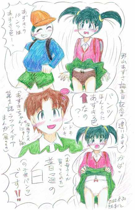 #野山あずさ生誕祭2022 おはようございます。#野山あずさ誕生祭2022 新作絵は #あずきちゃん 深夜アニメ化案で、1話のセリフをほぼ変えずにラフまんがをw 「あずき色のパンツ」絵は珍しいかも💕・・・お祝いになってる?w なお今日は遅出ですがコレ描いて寝不足😓 #あずきちゃん誕生日2022 #野山あずさ