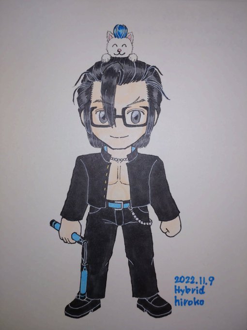 色鉛筆で描いてきたヨ✏️ ちびキャラなんで😍 マキシ「ひろこ 俺についてきな」 ひろこ「えッ なになになにぃ〜?」 あたしは明日会社なんで🏢🧹 みんな おやすみなさい〜😴 #格ゲーキャラ描こうぜ #ソウルキャリバー6 #あたしのマキシ #あたしのオリキャラ #ひろこみっく