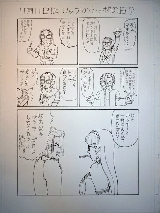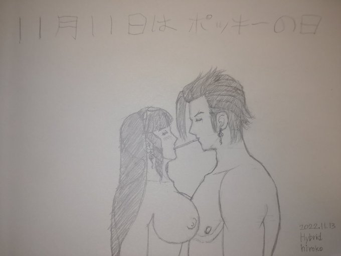 11月11日は「ポッキーの日」 3日遅れて😥ごめんなさい…🙇♀🥲 ラフスケッチで描きましたぁ〜✏️ 罰ゲーム?としての裸でポッキーゲーム? ポッキーはグリコです🍫 #ポッキーの日 #格ゲーキャラ描こうぜ #ソウルキャリバー6 #あたしのマキシ #あたしのオリキャラ #ひろこみっく