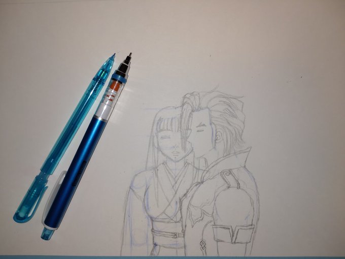あたしのマキシと あたしのオリキャラ 下描きして主線をコピックマルチライナー(ウォームグレー)で描いてきたよ🖊 皆さん、おやすみなさい😴 #格ゲーキャラ描こうぜ #ソウルキャリバー6 #あたしのマキシ #あたしのオリキャラ #ひろこみっく