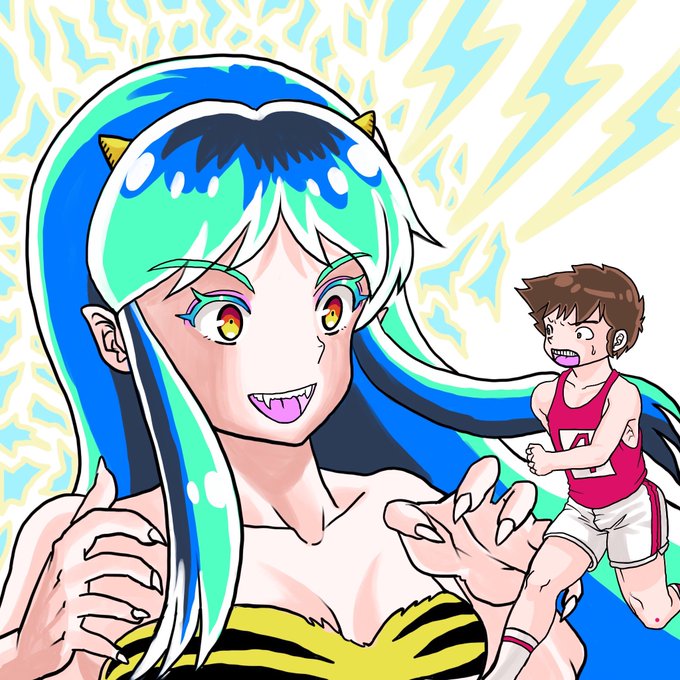 「ダーリンのブァカーッ!」 「うぎゃあー!」 というのは旧うる星やつらパターンでしょうか?電撃をカッコよく描きたかったのですが、全然ダメでした。#うる星やつら #ラムちゃん #あたる #絵描きさんと繋がりたい #絵柄が好みって人にフォローされたい