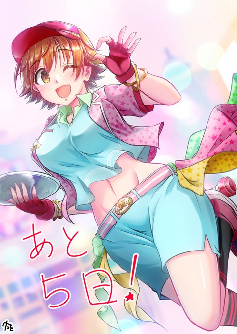 本田未央ちゃんの誕生日まであと5日!そしてライブ初日! 「ウェルカム! ミオーズへようこそ♪流れ星よりも速く、あなたの心に元気を届けちゃうよっ! ご注文はスマイル? ハッピー? OK、全部セットだね♪さぁ、両手を広げて、顔を上げて! 私をしっかり受け止めてGO!」 #本田未央誕生祭2022 #あと5日