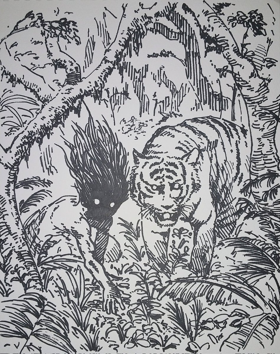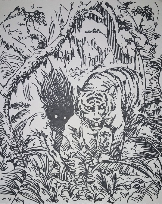 #イラスト好きさんと繋がりたい #あと1ヶ月 #ペン画 寅年もあと1ヶ月なので、今年始めに描いた虎の絵を再掲🐅 下書きせずに線を引いたわりには、構図が綺麗にまとまったので、結構お気に入りです☺️