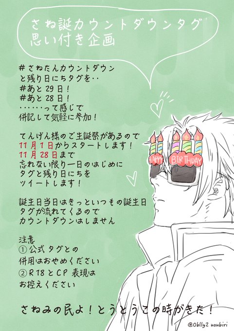 #さねたんカウントダウン #あと31日 こんな企画どう?🤔✨ 11月1日スタート 思いつきなのでゆるゆるでやりますので、 もし気が向いたら参加してみてやってください😇 twitter.com/0billy2/status…