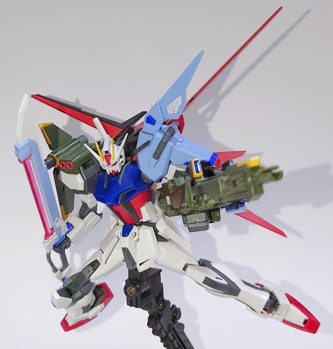 #あなたがときめく5文字教えてください ストライク #ガンプラ #ガンプラ好きと繋がりたい #ガンプラの画像貼るとRTされると聞いて パケ絵ポーズ② パーフェクトストライク編 HGSEED、MG、RG、PG