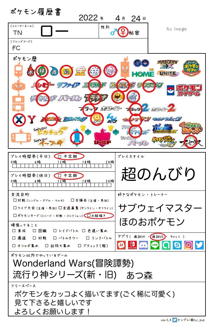 SV発売に向けて履歴書等々まとめました📝 イラスト描いたりたまに小説も書いてます✏️ 全反応巡回して無言フォローでお迎えします🚲 仲良くしていただけると嬉しいです🌷 #ポケモン履歴書 #あなたのお気に入りのポケモン #ポケモン絵描きさんと繋がりたい #絵柄が好みって人にフォローされたい