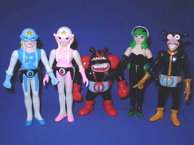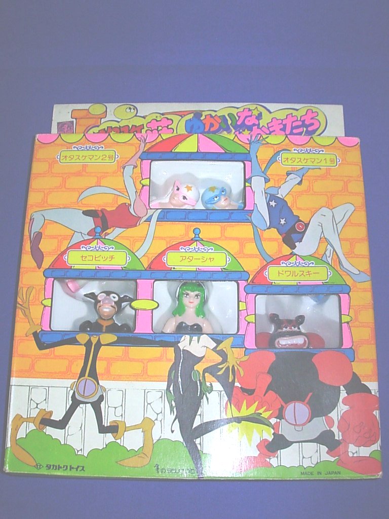#夜のフィギュア撮影会 6/23テーマ「フリー」 オタスケマンのソフビセット「オタスケ荘 ゆかいななかまたち」です。 オタスケマン1号、2号、アターシャ、セコビッチ、ドワルスキーの5体セットです。 #オタスケマン #タイムボカン #ソフビ #あなたのソフビ紹介