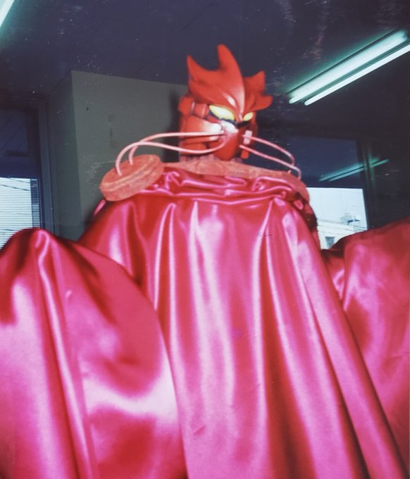 #あなたの好きな特撮の悪役は誰ですか #カーンデジファー の弟。 ネオカーンデジファー カーンデジファーのスーツを改造して使った設定で、そっくりに造形しました。(デジファーマスクを塗り直す案もありましたが。)タカラ社内で私が作りました。1/2スケールくらい。頭だけで体の中身は針金。 twitter.com/Karzworks/stat…