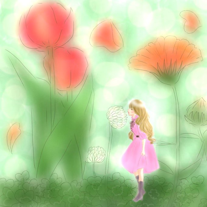 ホワホワ塗りで春を待ちます🌷 #あなたの春を待ってる作品を見せて #イラスト #女の子 #チューリップ #絵描きさんと繋がりたい #絵柄が好みって人と繋がりたい #イラスト好きさんと繋がりたい