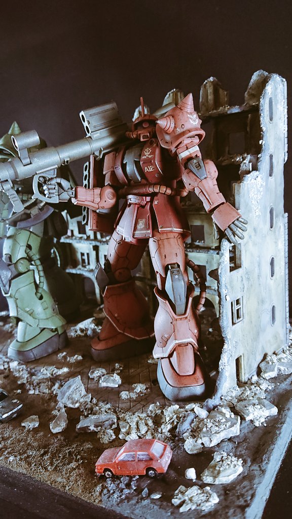 #あなたはなぜプラモを作るのですか 子供の頃 近所の模型屋のショーケースに入ってた全塗装ガンプラをへばりついて見てたなー。 たぶん、その頃の憧れが大人になっても忘れられなかったんだと思う。 いまの子供達にも興味を持ってもらえるような作品が作れたらいいなー と思って作ってます