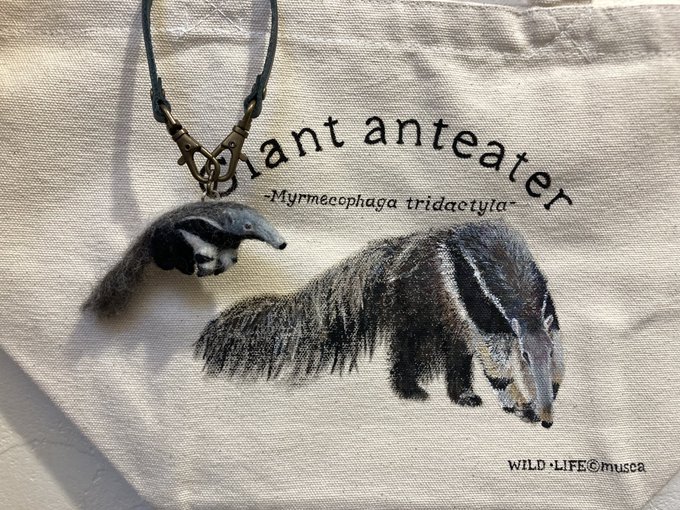 オオアリクイの親子バッグ完成♪ 8/5〜8/14 大阪のGallery Cafe *Kirin*にて開催の「あにまるぱらだいす展vol.16」に出します。 親はミニトートに手描き、仔は羊毛フェルト製のバッグチャームです。 親の背中に同化!これやりたかったw #羊毛フェルト #あにまるぱらだいす展