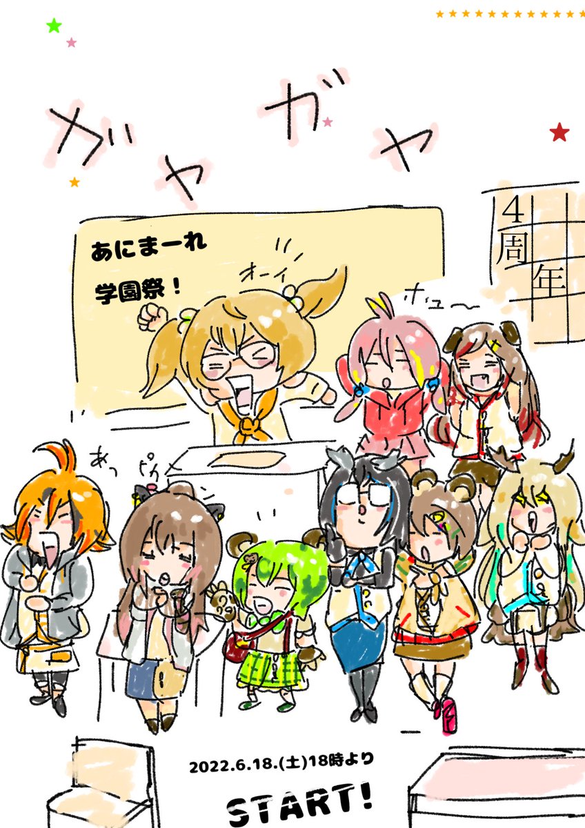 有閑喫茶あにまーれ4周年オンラインイベント あにまーれ学園祭 2022,6.18(土) 18:00 開幕! チケット好評発売中💛 virtual.spwn.jp/events/2206181… イベント微公式サイト animare4th.studio.site #あにまーれ4周年あーと #あにまーれ4周年