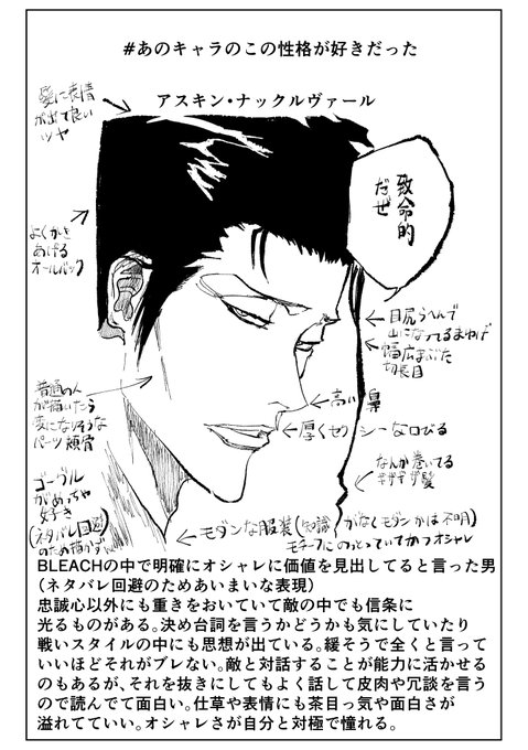 #アスキン・ナックルヴァール #あのキャラのこの性格が好きだった 名前の響きも好き 最終章で出たにしては好きすぎる 良い協力者になってほしかったけどやはり敵だからこその魅力がある なりたい 久保先生の神がかったキャラデザの中でも至高だと思う #コルクラボマンガ専科 #1日1コマ #BLEACH
