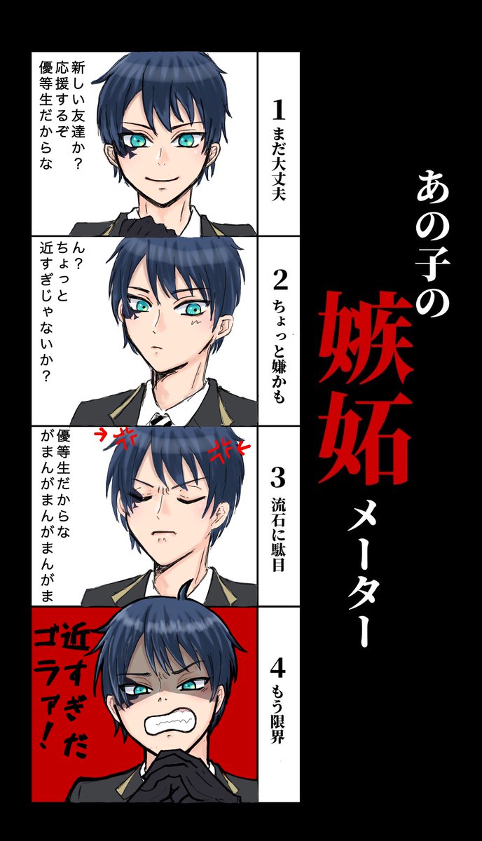 テンプレお借りしました! デュースくんは優等生として我慢しなきゃと思ってそうだけど割とすぐキレそうな妄想 前のエース ver. もツリーに入れたので良ければぜひ! #あの子の嫉妬メーター #twstプラス #twstファンアート #ツイステファンアート
