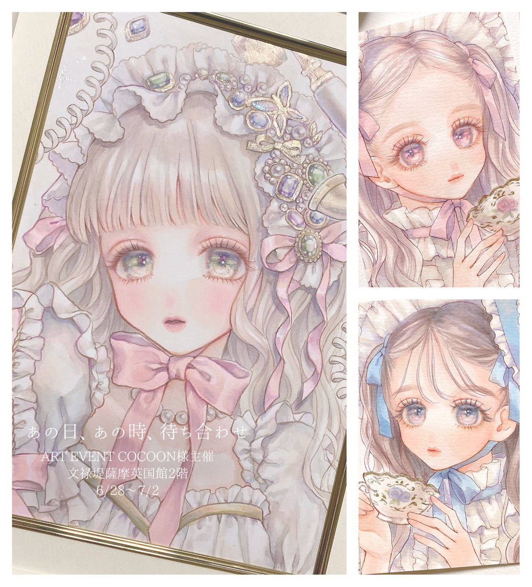☏展示のお知らせ☏ 【 #あの日あの時待ち合わせ 】 🫖主催 ART EVENT COCOON様 🫖会場 文禄堤薩摩英国館2階(大阪) 🫖会期 6/28(水)~7/2(日) 12:00~17:00(最終日11:00~15:00) ୨୧┈┈┈┈┈┈┈┈┈┈┈┈┈┈┈୨୧ 額装1点、ドローイング2点で参加です。何卒よろしくお願いいたします🌷♡