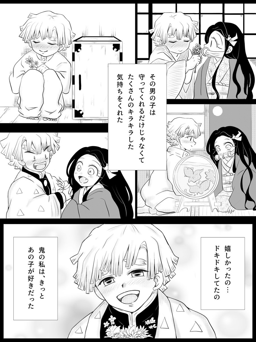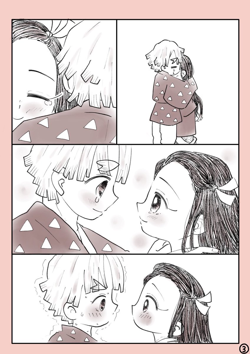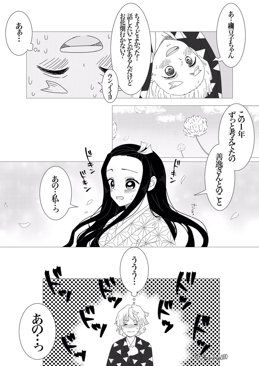 #あの日から一年後のぜんねずが見たい #ぜんねず 大遅刻なのですがどうしても描きたかったので参加させて頂きます🙇♀️ 素敵タグありがとうございます❤️ 想いが溢れて言葉にできない🎀ちゃん(*´꒳`*) (1/2)