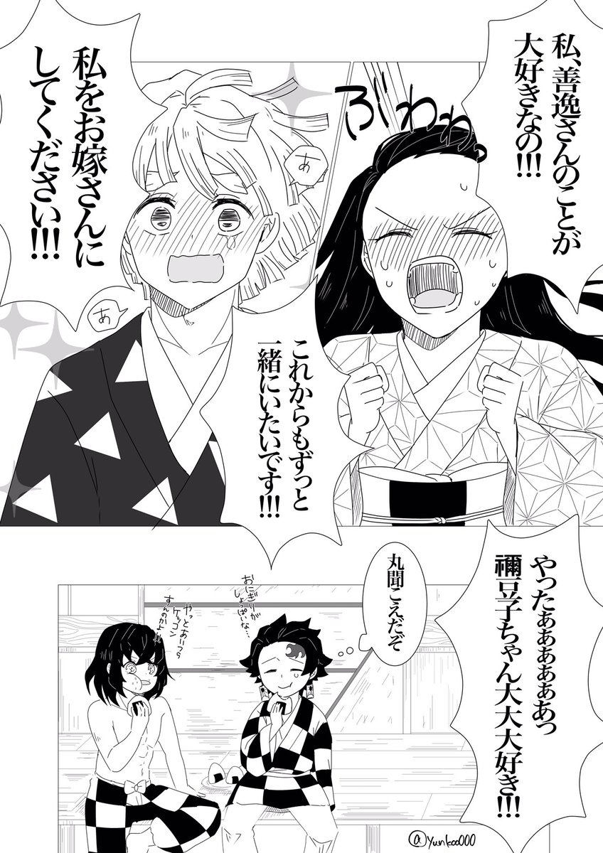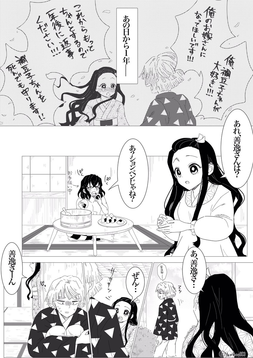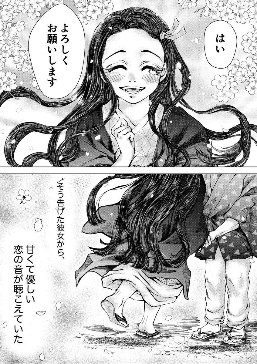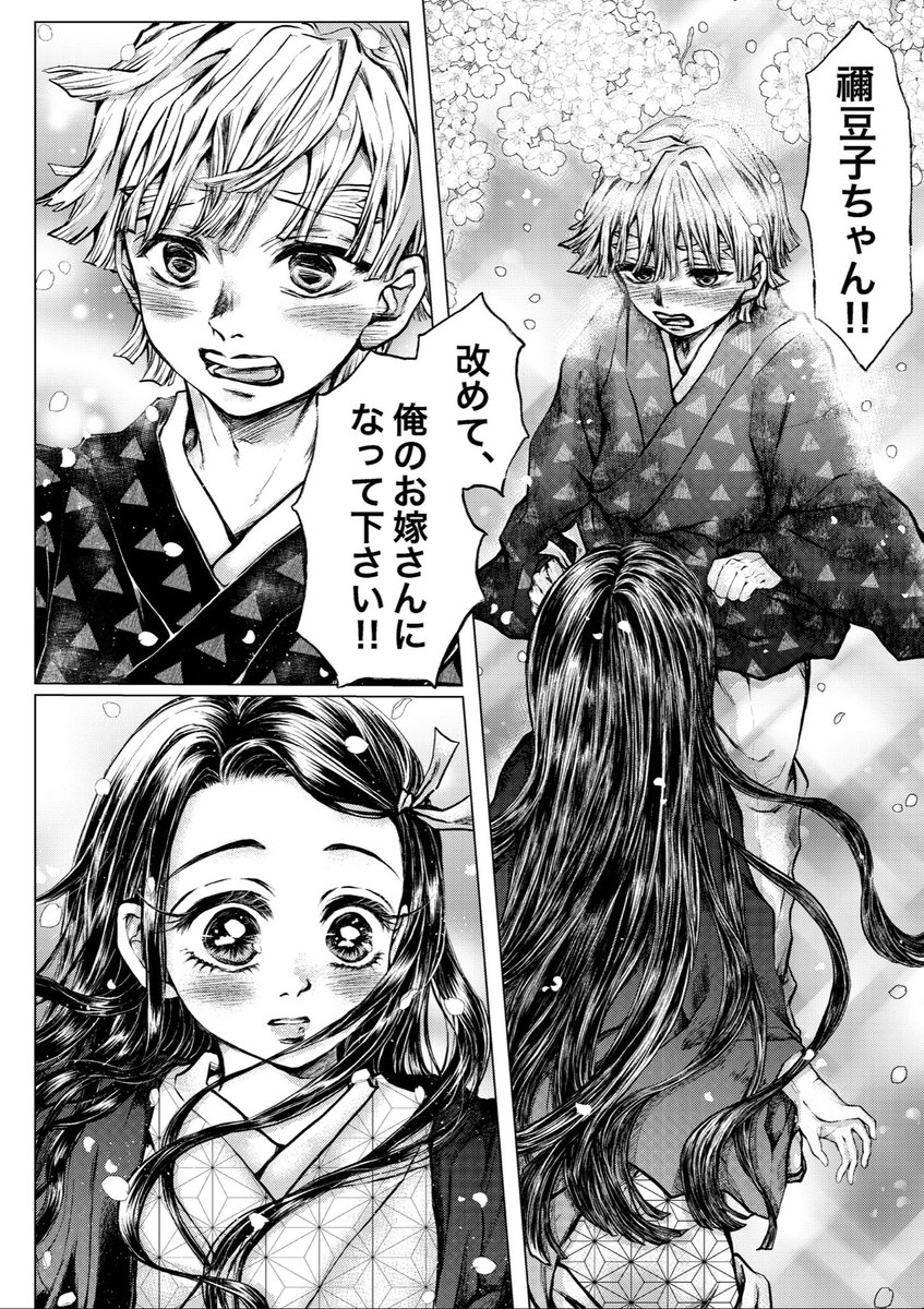 #あの日から一年後のぜんねずが見たい #ぜんねず 大遅刻なのですがどうしても描きたかったので参加させて頂きます🙇♀️ 素敵タグありがとうございます❤️ 想いが溢れて言葉にできない🎀ちゃん(*´꒳`*) (1/2)