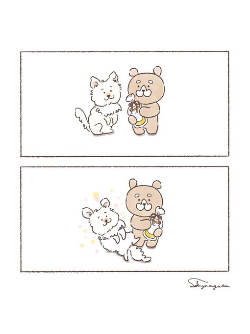はちみつを渡したくないくまと 欲しいアピールをしまくるわんこ #イラスト漫画 #あひる #ゆるいイラスト #ゆるイラスト展覧会 #Twitter交流会会場 #漫画が読めるハッシュタグ #みんなで楽しむTwitter展覧会 #イラスト好きな人と繋がりたい #漫画 #可愛いと思ったらRT