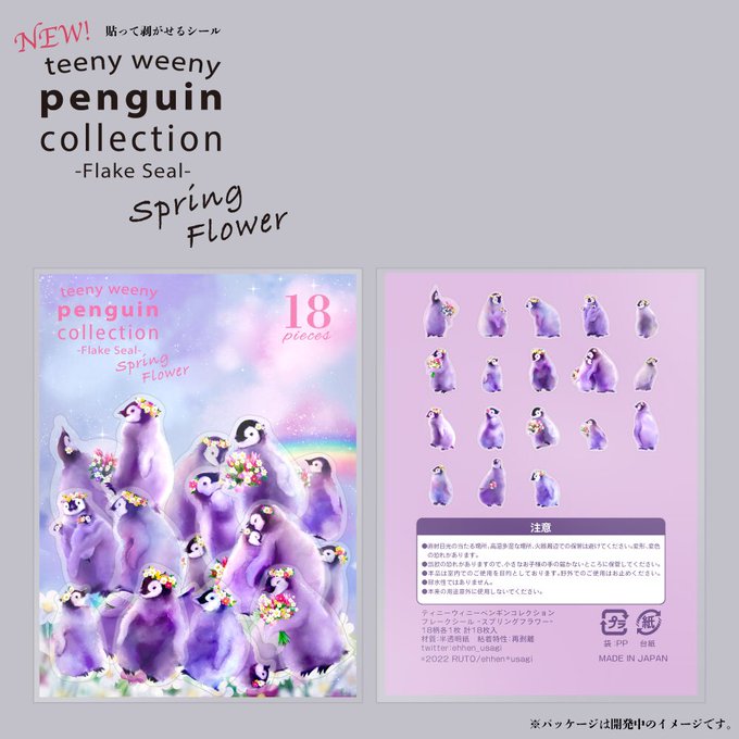ペンギンフレークシールのパッケージが出来ました〜!🐧🌸🌼🌷 いよいよ明日から4月!#あべのペンギンバザール までもう少しです♫ #ペンギン #イラスト #illustration #Penguin