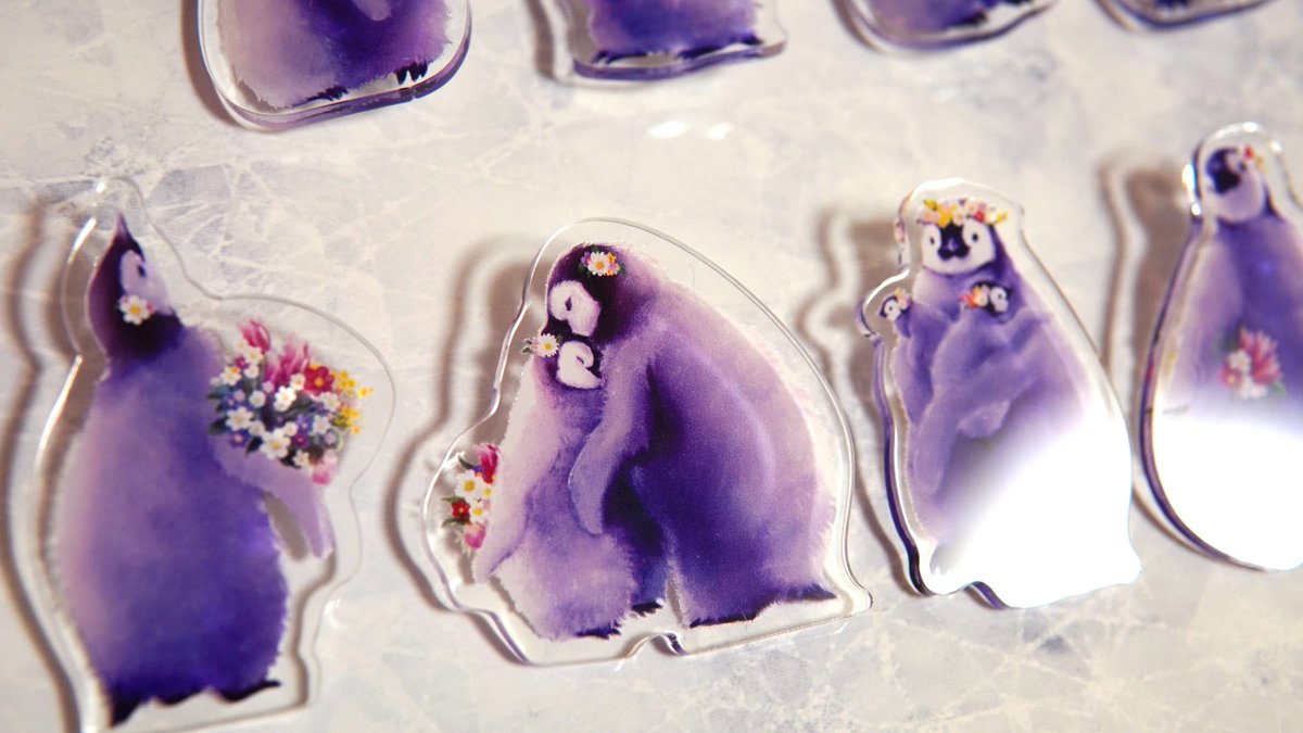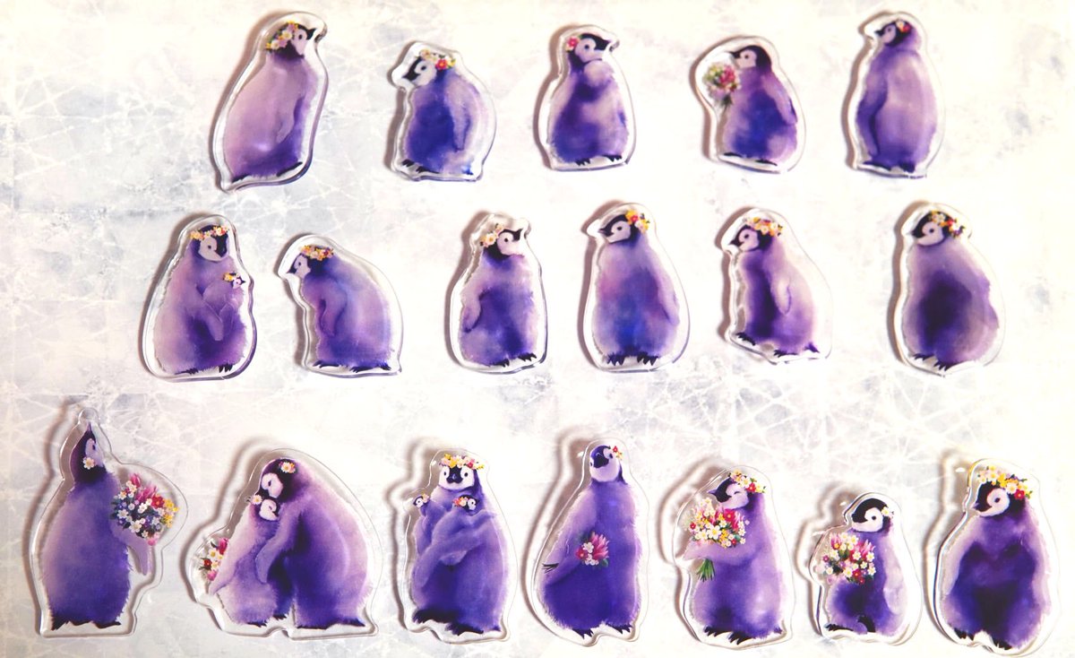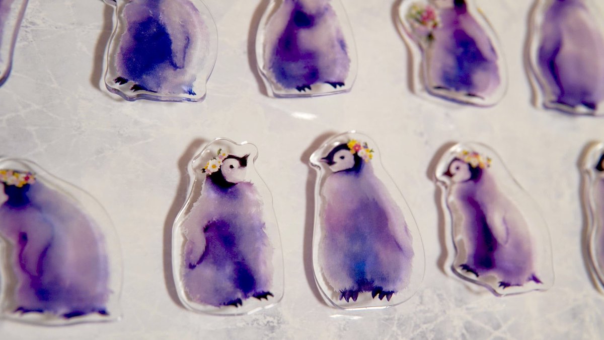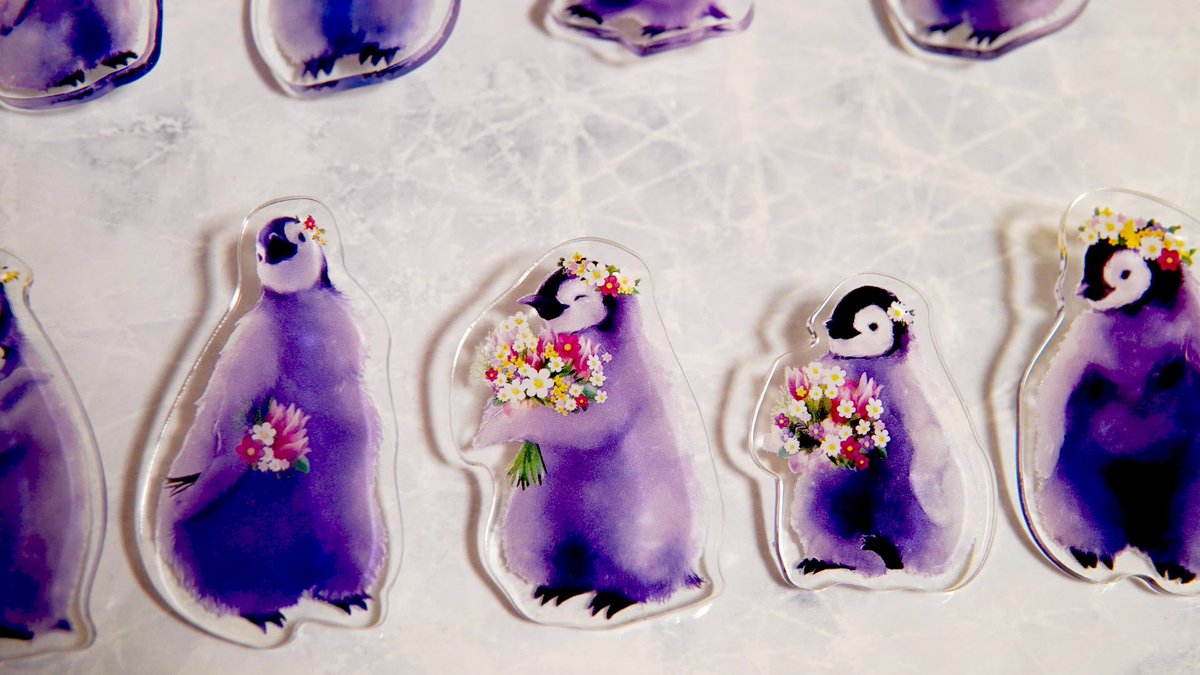 ペンギンアクリルバッチ完成しました〜🐧✨ 可愛く仕上がったので嬉しい!ぜひお気に入りのペンギンと一緒に色々な場所へお出掛けして欲しいです🐧🌸🌼🌷 何羽か組み合わせても可愛いらしいですよ♫ #ペンギン #イラスト #あべのペンギンバザール #penguin #illustration
