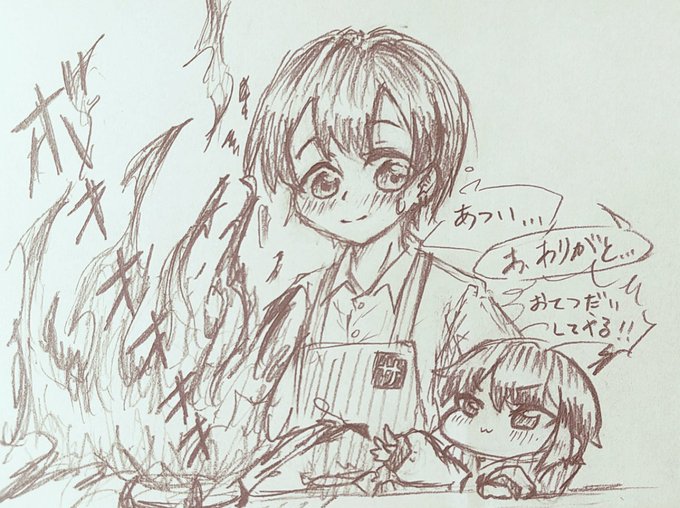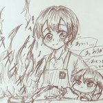 今日のイラスト🍳🈂️🔥 小さなKAITOさんが翔くんのお料理のお手伝い!!!! 張り切りすぎてますww火加減を知らないwwww🔥🔥🔥🈂️💦 #さむらいらすと #KAITOストーリー #あまえびのイラスト屋