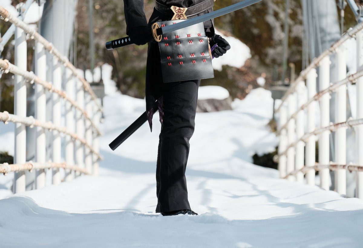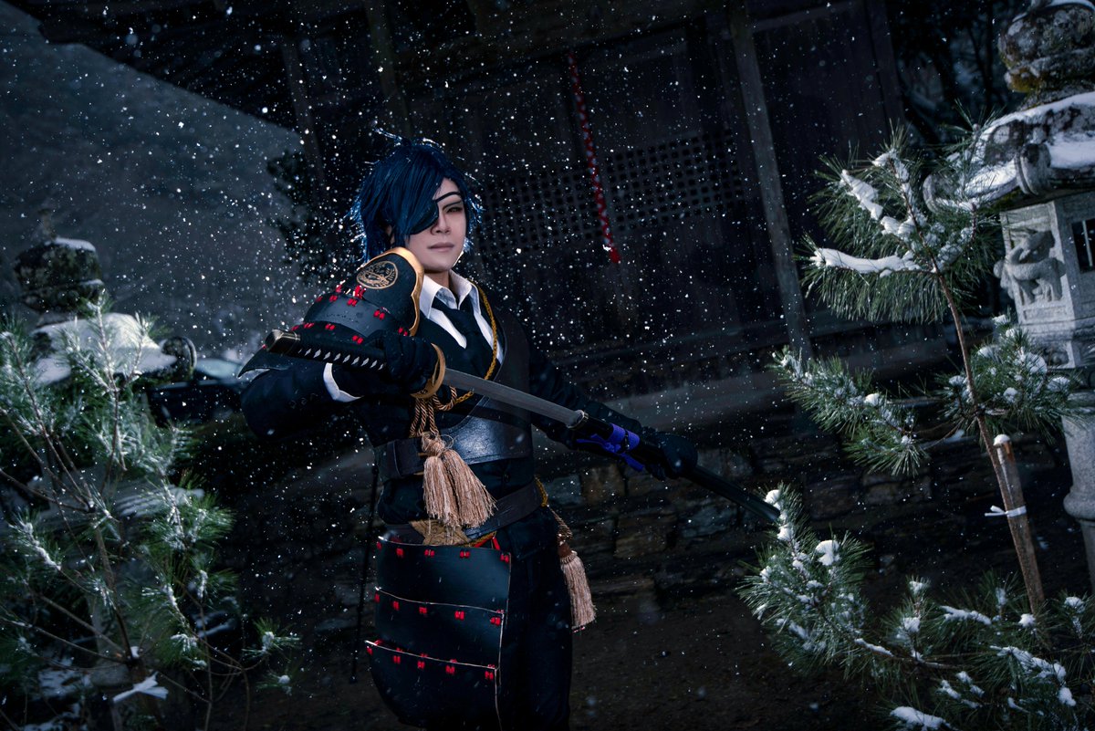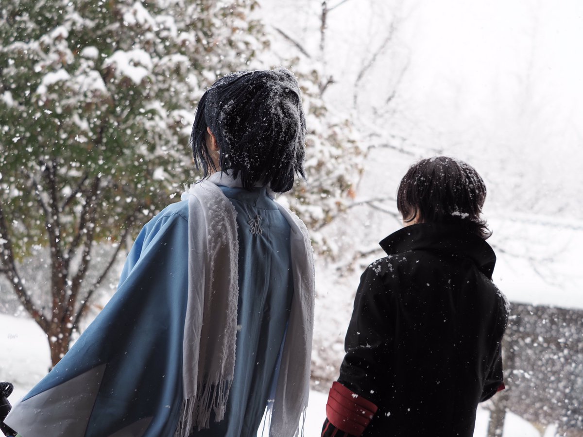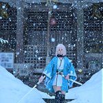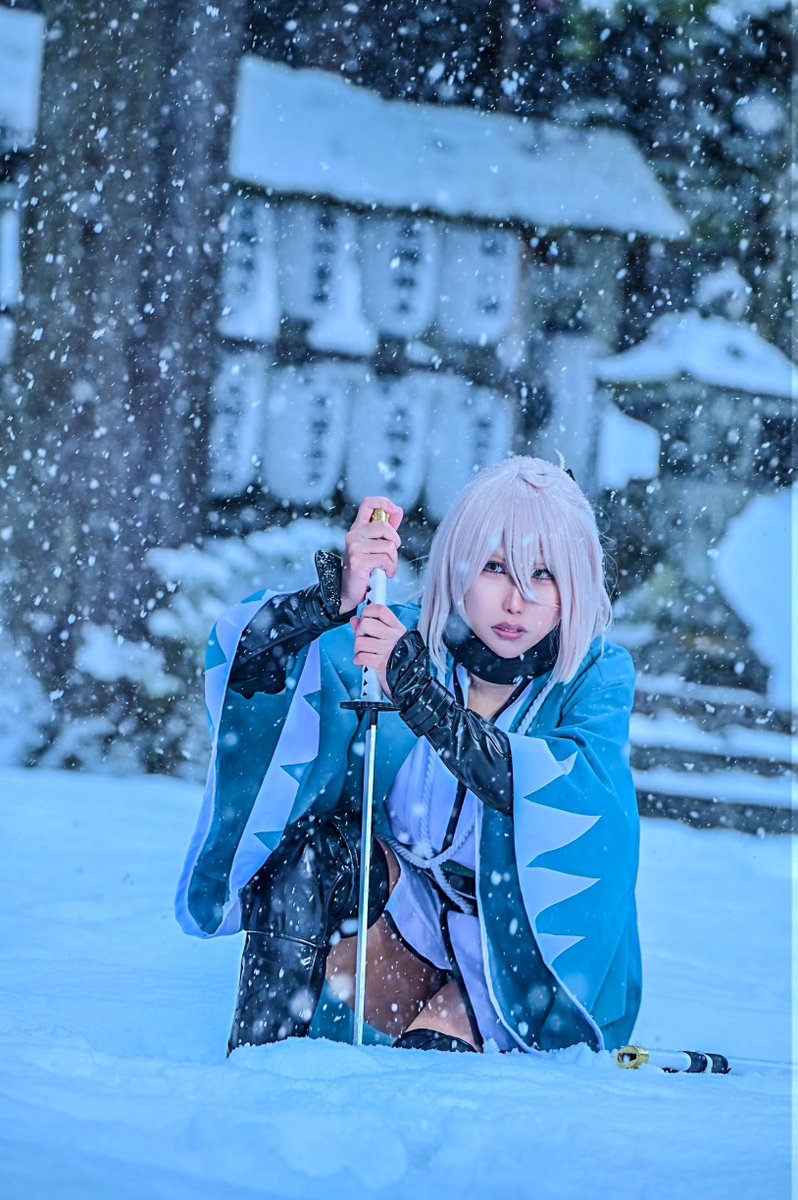 #あまりにも暑いので真冬のコスプレ写真を眺めて涼みたい 沖田組 ⚠️Cosplay⚠️ 載せてるかもしれないけどw 縁側から外が白いのは降雪の影響で真っ白になってます (吹雪いたらホワイトアウトになる降り方) 大和守安定 まきせさん @Makise_touken 📸巧郎さん@C35703430 ロケ地撮影許可済