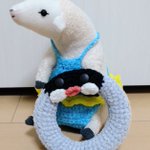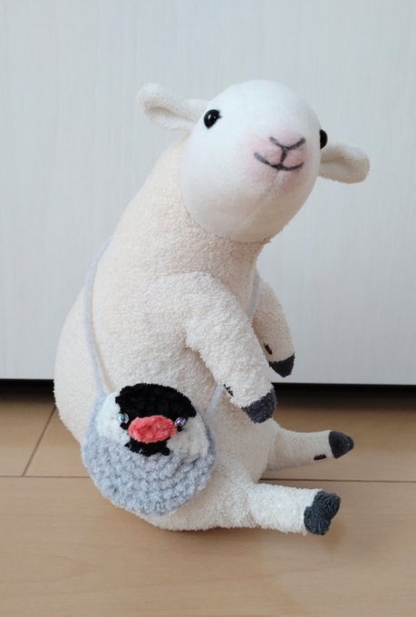 推し文鳥(@masumasumasu_nさんちのなちぐろさん) が成長著しいのでバッグにしました。 #ドヤる羊 #六甲山牧場 #羊の毛刈りぬいぐるみ #あみぐるみが編みたくなる糸 #なちぐろ沼にはまる