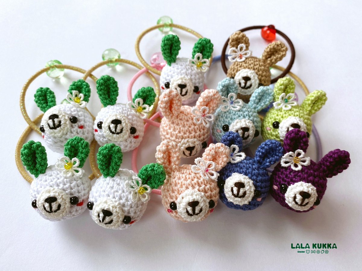 【販売のお知らせ】 1/13(金)21時頃〜 2023年の初売りスタート‼️ 干支のうさちゃん作品🐰を販売いたします♪ 新色のうさちゃんヘアゴムが盛りだくさん✨ 詳しくは、minneの各ページをご覧くださいませ♪ minne.com/@lalakukka #minne #あみぐるみ #あみぐるみヘアゴム #うさぎ