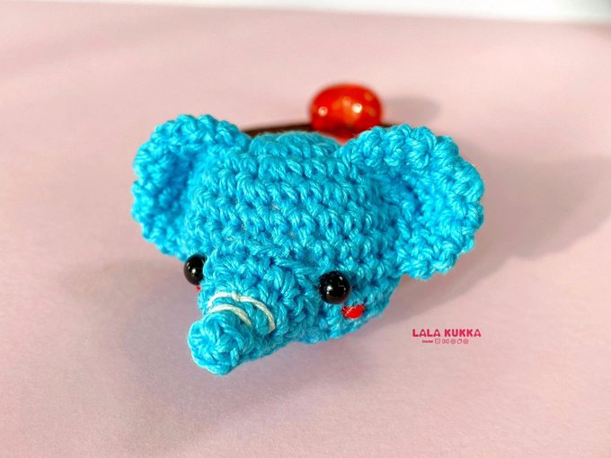 バレンタインバージョン💝の青空色ぞうさんのあみぐるみヘアゴム💙🐘 真っ赤なほっぺがキュート😍 お耳にリボンをつけたら完成🎀 minne.com/items/31305070 #あみぐるみ #あみぐるみヘアゴム