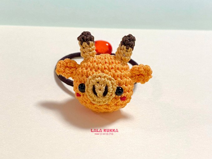 お迎えには間に合いませんでしたが、なんとか完成〜✨ 人気のキリンさん🦒バレンタイン💝バージョンでした♪(お耳のリボンは後ほど🎀) もう一つ作る予定です🦒 minne.com/items/31337677 #あみぐるみ #あみぐるみヘアゴム #キリン