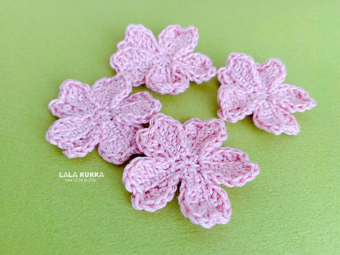 今日は、さくらの日🌸 LALA KUKKAの桜もようやく咲きました〜🌸 近日販売開始予定です♪ minne.com/items/1365917 #さくらの日 #桜の日 #かぎ針編み #あみぐるみヘアゴム