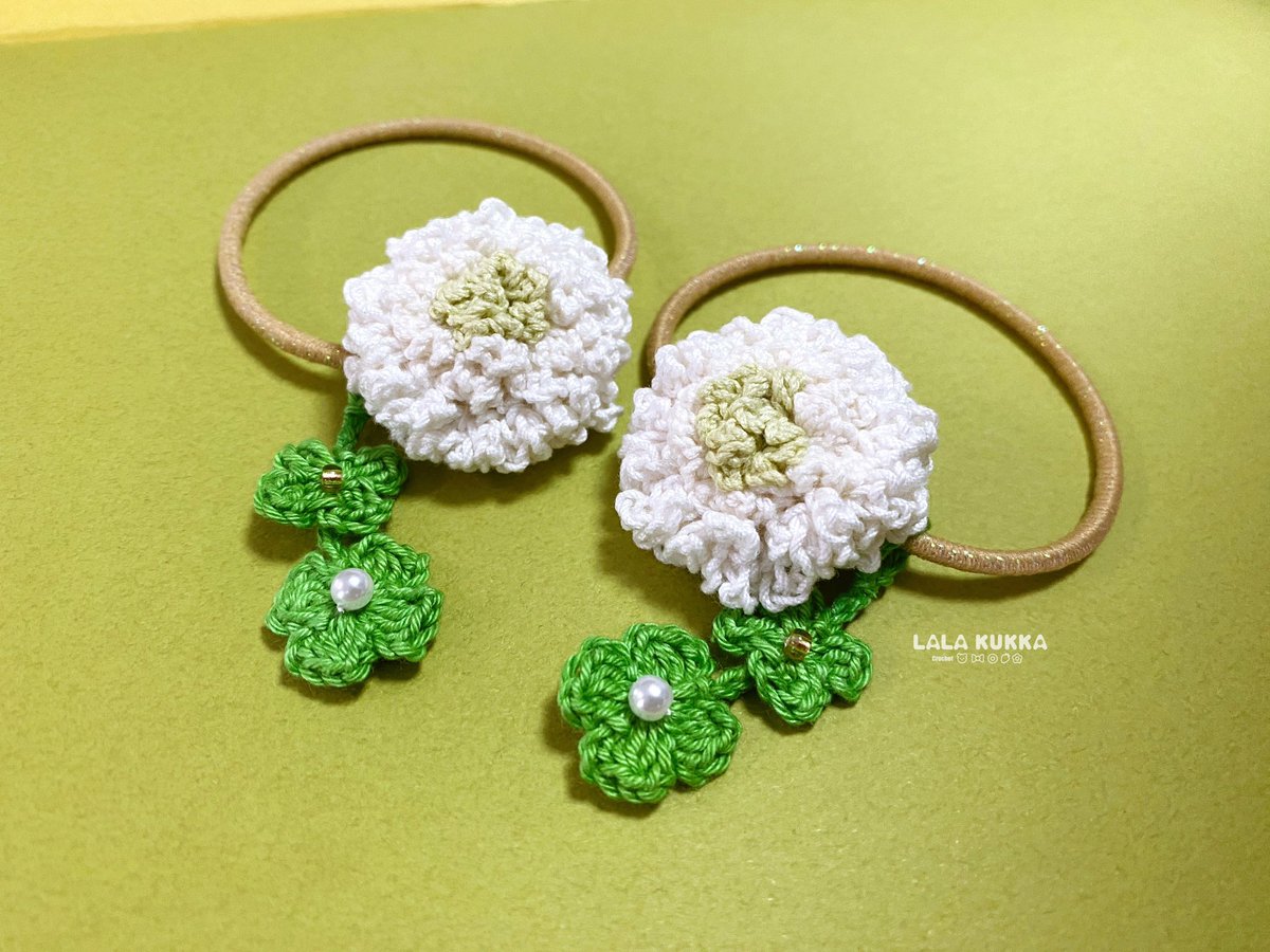 桜のヘアゴムは、諸事情により、もう少し先の販売になります🌸 その前に、タンポポとシロツメクサのヘアゴムを販売予定です。 シロツメクサヘアゴム🍀頑張って完成させます( ・`ω・´)キリッ minne.com/@lalakukka #minne #かぎ針編み #あみぐるみヘアゴム