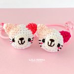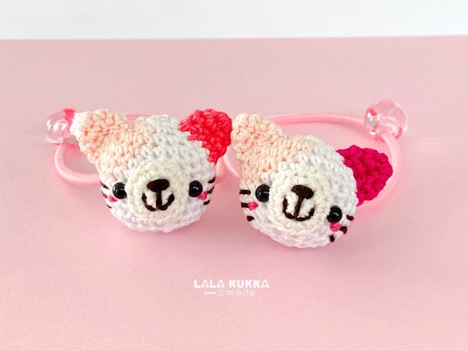 お耳のリボンつきました〜🎀 バレンタイン作品は、これだけになりそうです💝 販売準備進めま〜す( ・`ω・´)キリッ ひとまずここまでで、晩ご飯の支度💨 minne.com/@lalakukka #minne #あみぐるみ #あみぐるみヘアゴム #バレンタイン