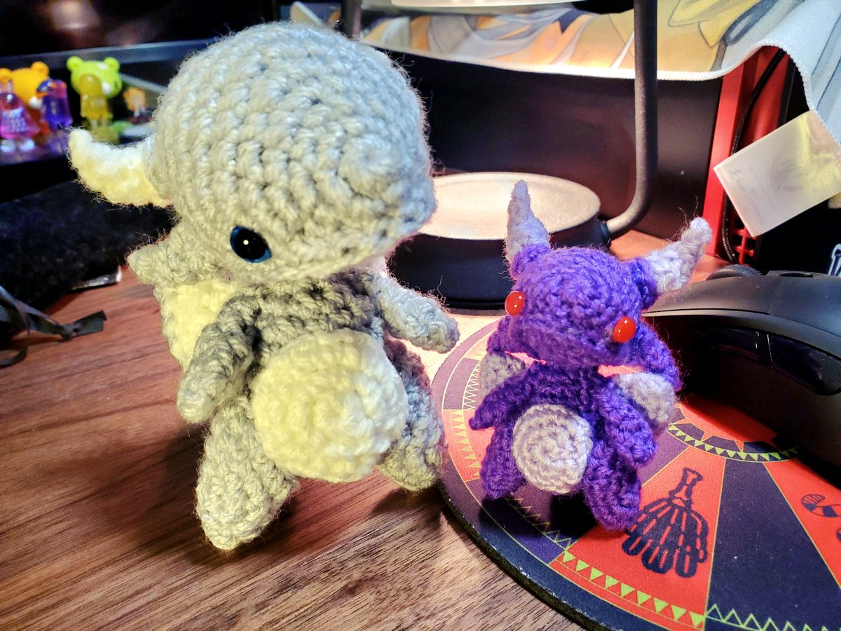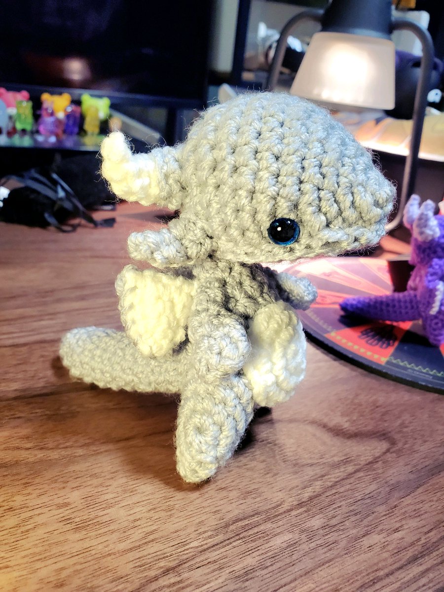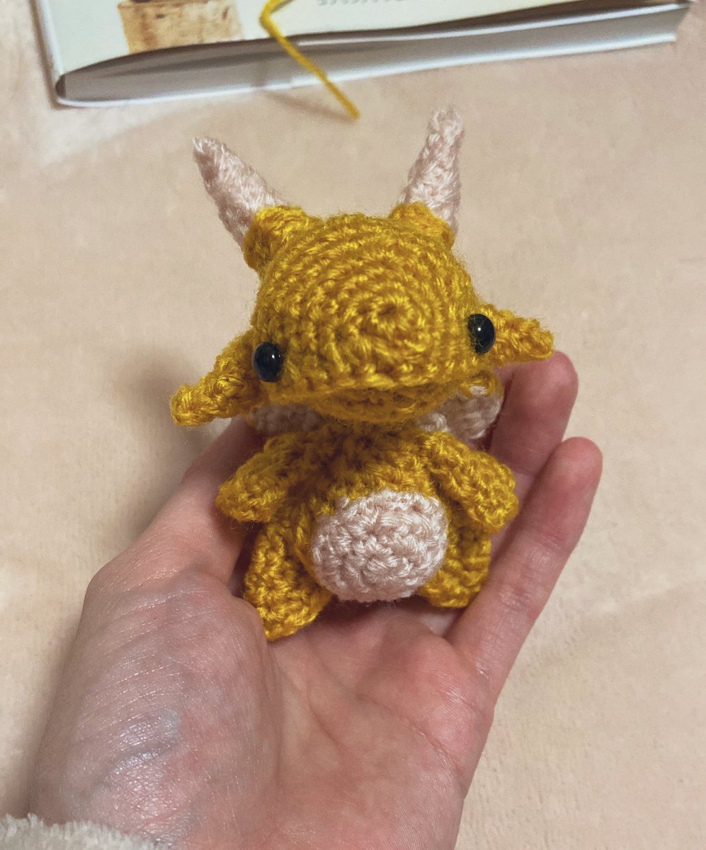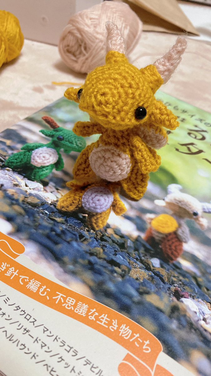 タンゴRyu @tanngo_ さんの作品が大好きでいつも楽しみに見ていたんだけど、初あみぐるみチャレンジしました。 色々間違ってたり、歪んでいたりするけど、私だけの可愛いドラゴンちゃん💕 #あみぐるみモンスター