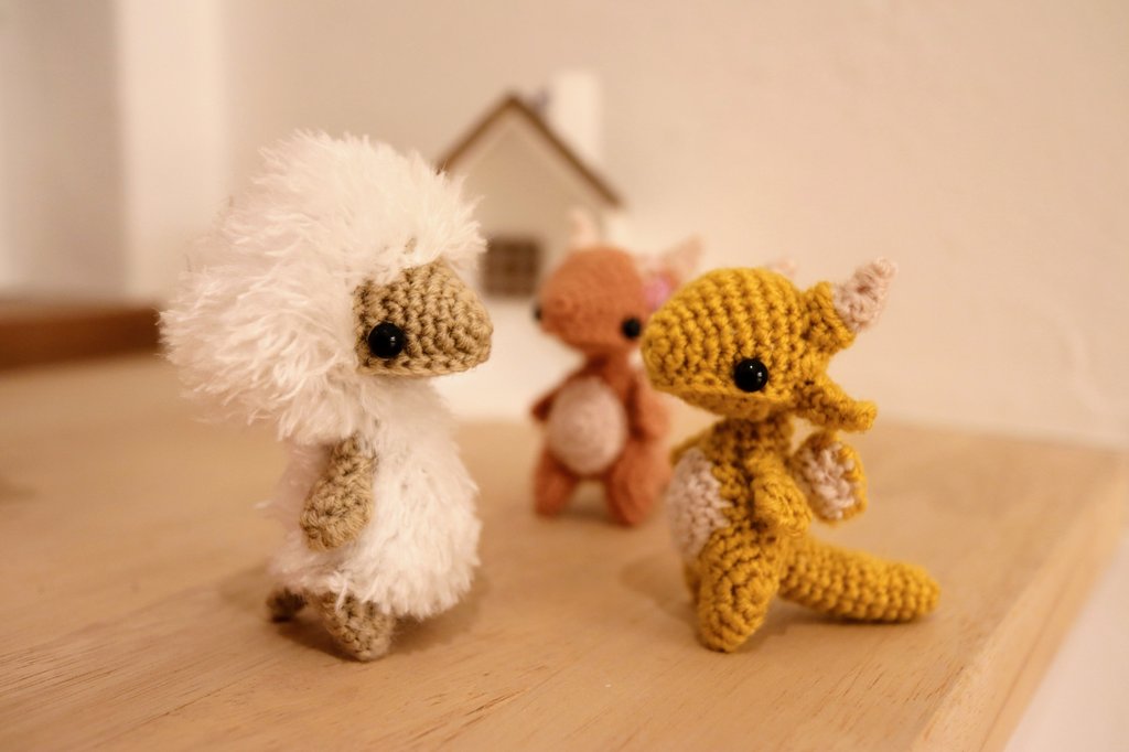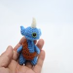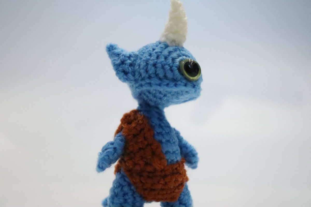 タンゴさんの『あみぐるみモンスター』を参考に、元気な氷竜"常磐”を生み出しました。 ※事前に作りたいキャラが存在していた為、編み図通りに作ってからアレンジを加えています。 #あみぐるみモンスター
