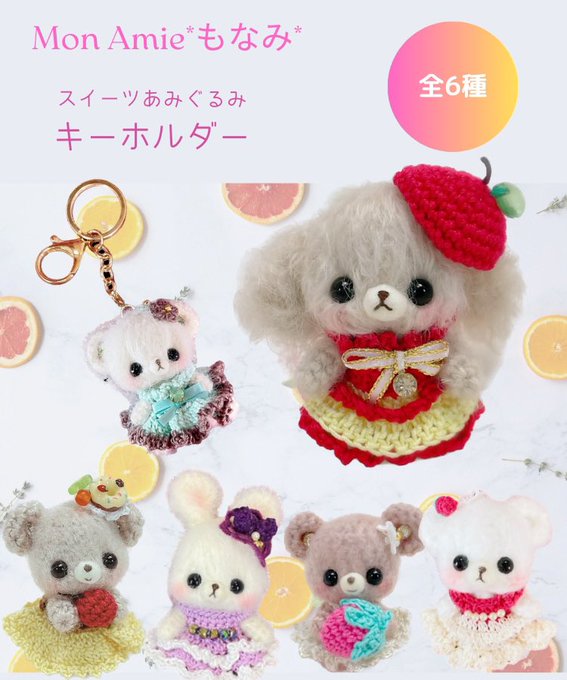 【新作】 もふもふツインテちゃん💕 🍑ぴーちちゃん 🍇ぐれーぷちゃん 🍈めろんちゃん #アイドール大阪 に連れて行きますねっ✨ #amidollplanet #あみプラ #あみぐるみ #あみぐるみが編みたくなる糸