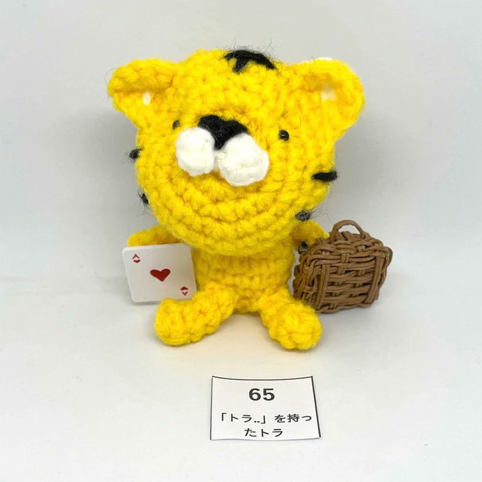 6号です! #あみコレ2021 テーマ作品コンテスト「とら」のエントリー作品をご紹介します! 作品番号65「「トラ..」を持ったトラ」 「トラ..」を両手に持って嬉しそう!目の窪みや顔の角度にも工夫が施され、作品に対するこだわりを感じます! 投票はこちら↓ store.amigurumi.jp/collections/th… #あみぐるみ