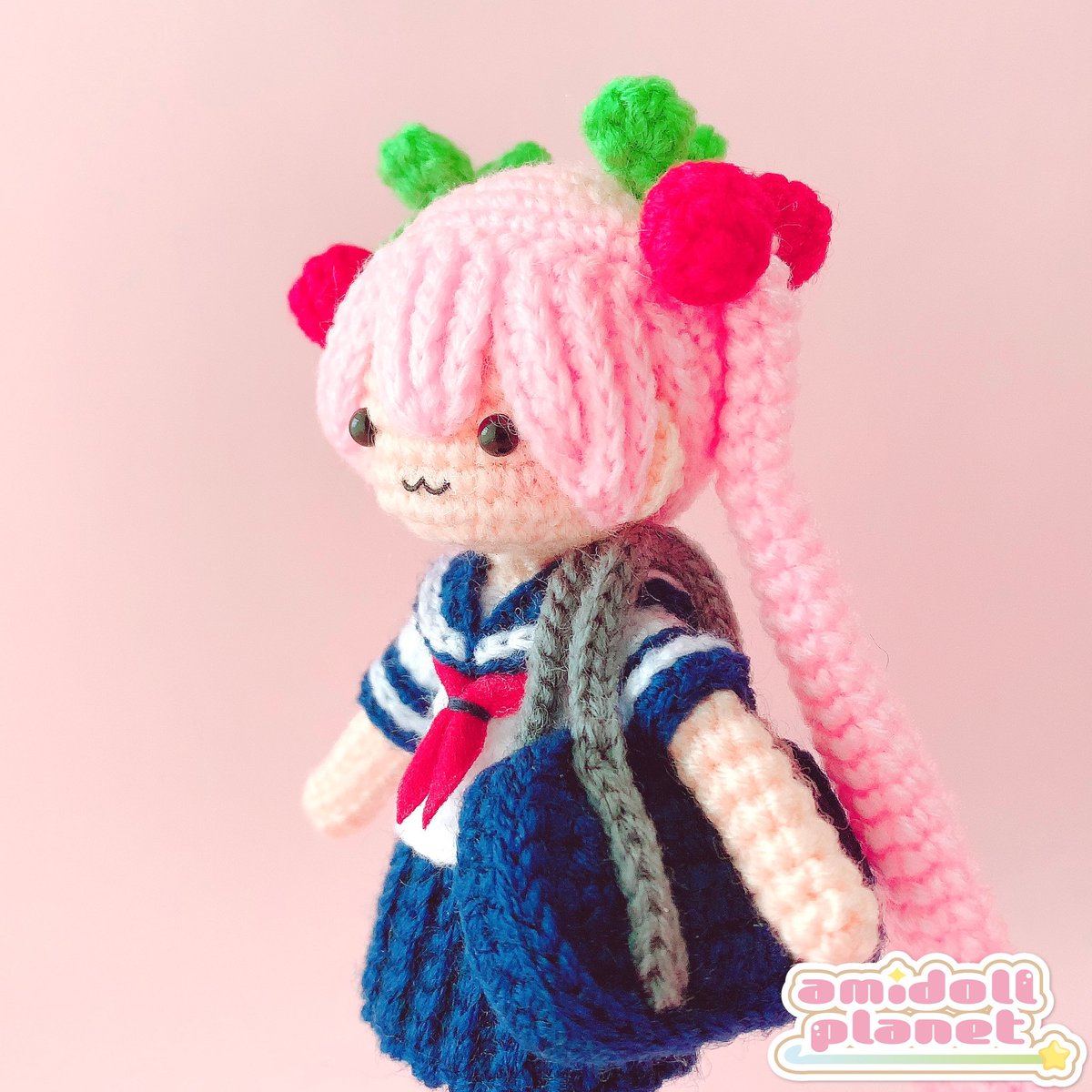 【新作】 もふもふツインテちゃん💕 🍑ぴーちちゃん 🍇ぐれーぷちゃん 🍈めろんちゃん #アイドール大阪 に連れて行きますねっ✨ #amidollplanet #あみプラ #あみぐるみ #あみぐるみが編みたくなる糸