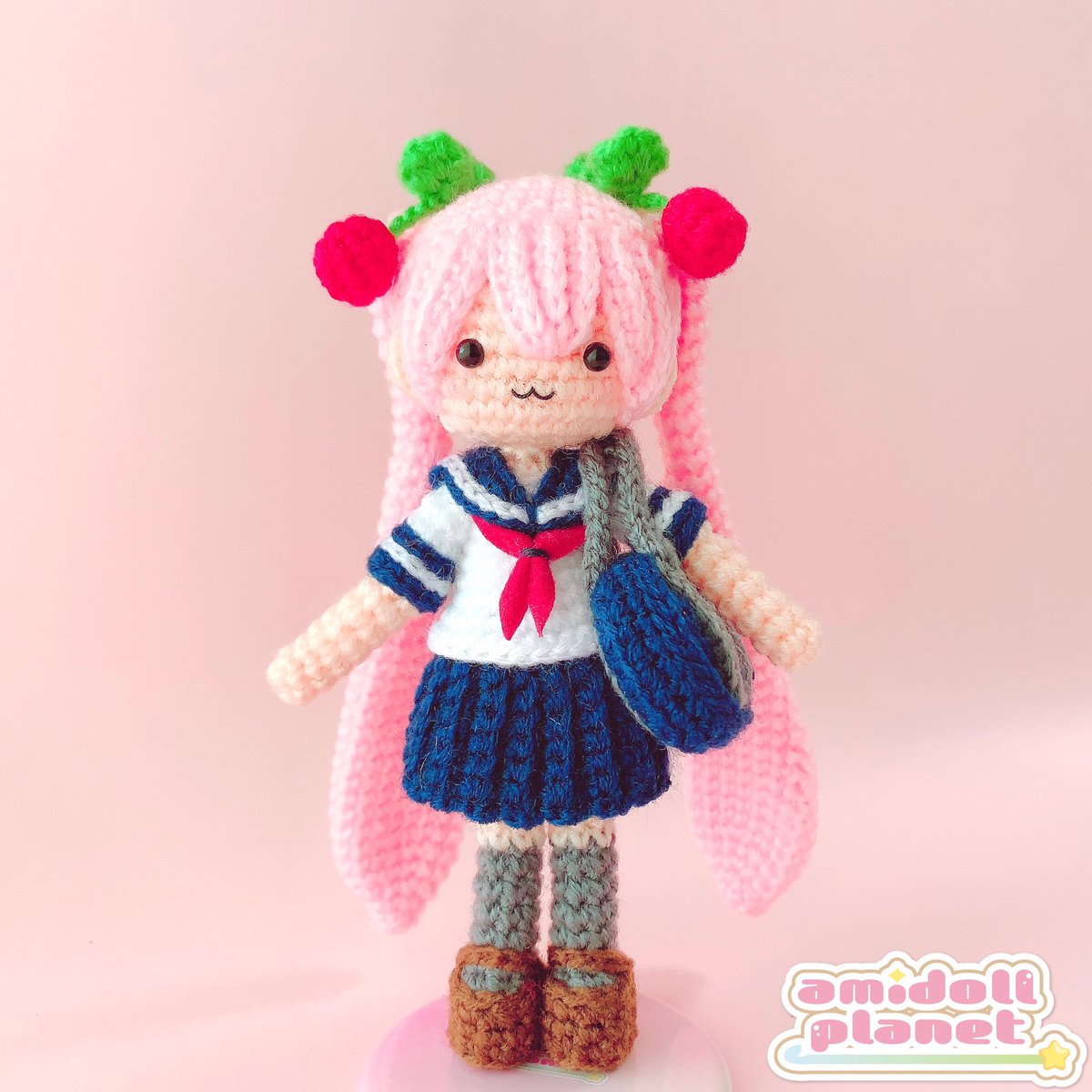 『ぬい服が着せられるあみぐるみ』できたよー✨ 身長は14cmぐらいで、自由にポーズが取れます♪ 着せている服は全てセリアで買ってきたものです(*´ω`*) #amidollplanet #あみプラ #あみぐるみ