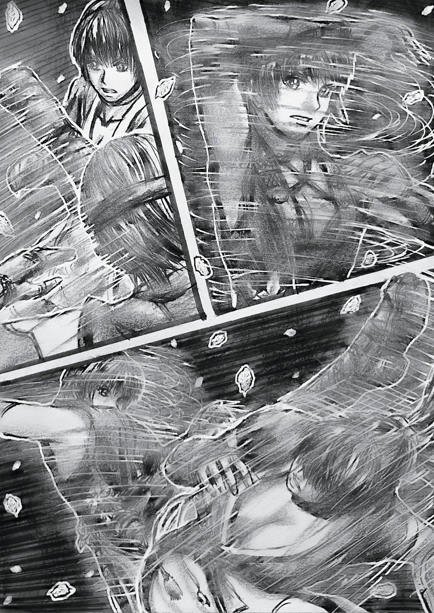 デッドオアアライブ 便せん | 蝉埜丞(せみのすけ) #pixiv pixiv.net/artworks/10042… 便せん用に描いたやつ #かすみ #あやね #デッドオアアライブ #アナログ #モノクロ
