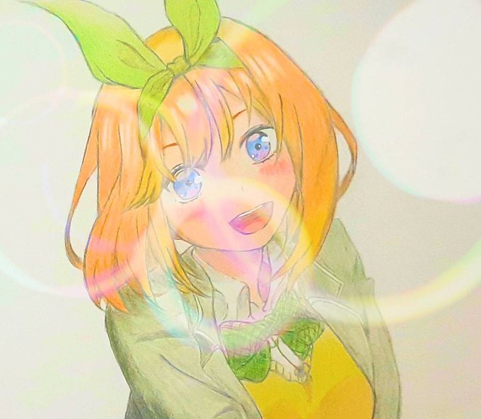 暑い☀️ 来週はもっと暑くなるそうです 四葉描きました🍀 『眩しい笑顔』 四葉)水分忘れずに🍀 #五等分の花嫁 #四葉 #あやねる #アナログイラスト #模写 #イラスト #絵描きさんと繋がりたい #イラスト好きな人と繋がりたい #絵柄が好みって人にフォローされたい #初夏の創作クラスタフォロー祭り