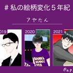 #私の絵柄変化5年紀 タグとテンプレお借りします 画力の成長はあまり感じられなかったんですけど、彼らの表情の移り変わりとか感じて勝手に目頭熱くしてます 柔らかくなったよねぇアヤたん #あやりょ